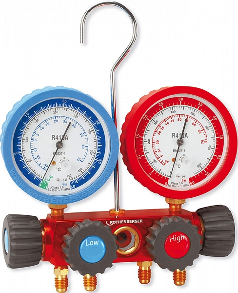 - Четырехпозиционный аналоговый манометрический коллектор для хладагентов R410A, R32 Rothenberger 5/16 SAE: